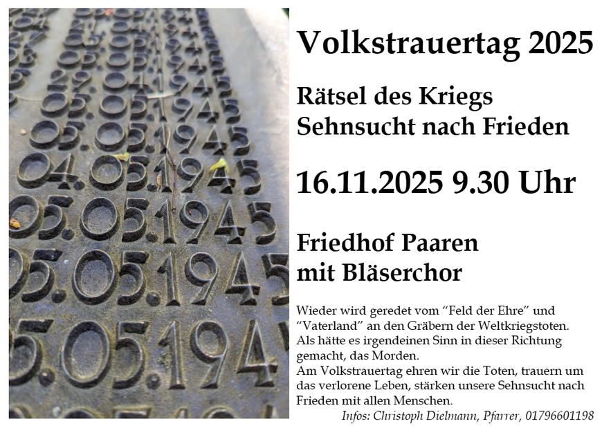 und in Vorausschau auf die ernsten Feiertage des Novembers, siehe unten.